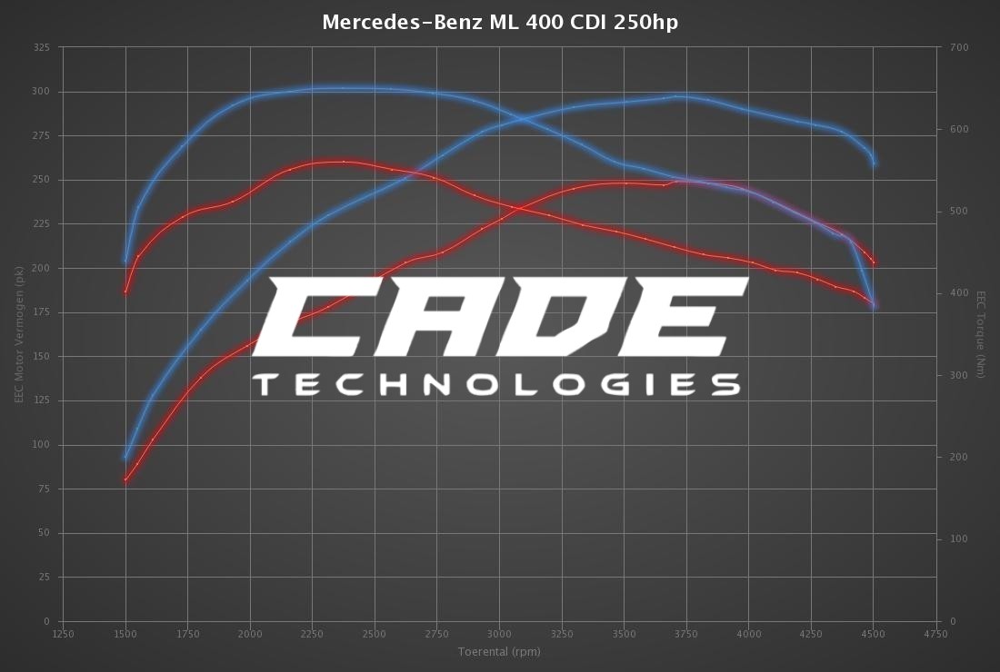 CADE TECHNOLOGIES is leading in the development of Mercedes-Benz ML 400 CDI 250hp tuning files. The development of each Mercedes-Benz ML 400 CDI 250hp tuning file is the result of perfection and dedication by CADE TECHNOLOGIES programmers. The organization only uses the latest technologies and has many years experience in ECU remapping software. Many (chiptuning) organizations around the globe download their tuning files for Mercedes-Benz ML 400 CDI 250hp at CADE TECHNOLOGIES for the best possible result. All Mercedes-Benz ML 400 CDI 250hp tuning files deliver the best possible performance and results within the safety margins.